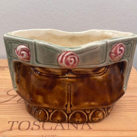 Natpotte. Flot emaljeret potte i metal med patina. Blå farve. Diameter 18 cm. Flot stand og meget blank. Fin til blomster og dekoration.