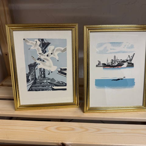 5 stk fine Sikker Hansen billeder "Vesterhavsserie" - trykt til Tobiesens Papirhandel i Kongensgade (mener de er fra 1950'erne). Smukt trykt og på kraftigt papir. Hvert billede måler 15x19 cm.