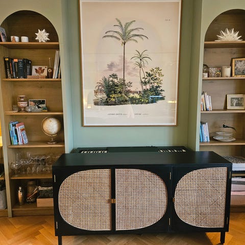 Fin skænk med dybeskuffer og mulighed for at udstille bagved dybeskuffer