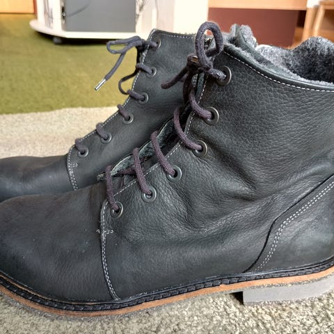 HAR FUNDET EN LILLE FEJL VED LYNLÅSEN...STØVLEN KAN GODT BRUGES... Kan bare bruge snørebåndene og lade lynlåsen være lukket.... MEGET BILLIG OG GOD STØVLE TIL KUN 200 KR..