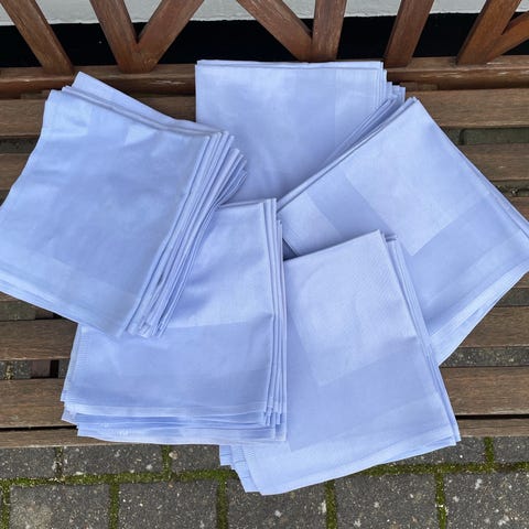 7 fine stofservietter. Måler ca. 42 x 42 cm. Ikke brugt, men vasket en enkelt gang. Som nye. Samlet pris 95 kr.