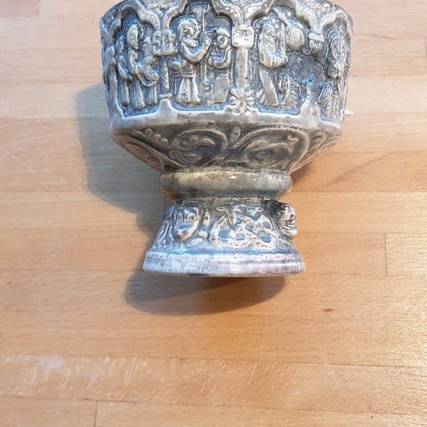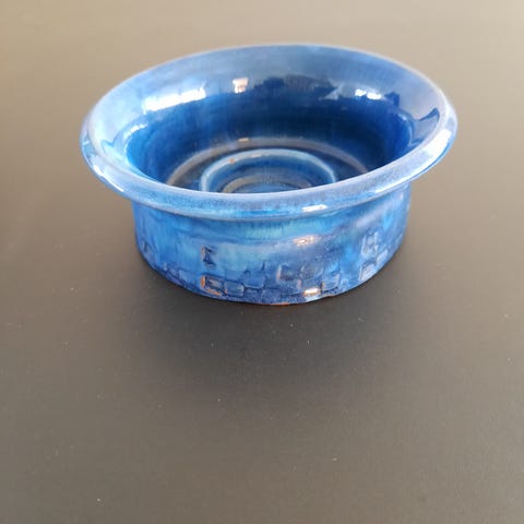 Stentøj, Skål, Frølich Danmark, Smuk glaseret skål med blå inderside og mørk stentøj på hans og yderside. Små afslag.