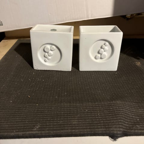 2 - vintage lille lyseblå bordvase håndlavet af glaseret porcelæn med 3 D krans af rosehovede og grønne blade. Flot stand.