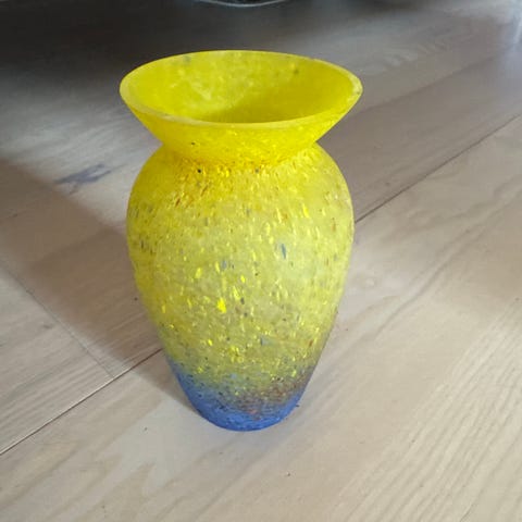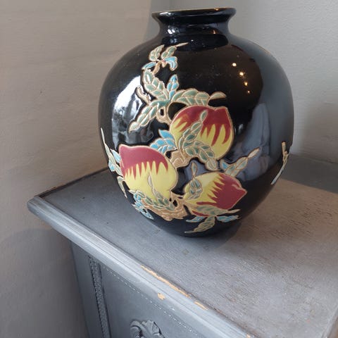 Virkelig pæn vase, højde 60 cm. Blomsterne følger med.