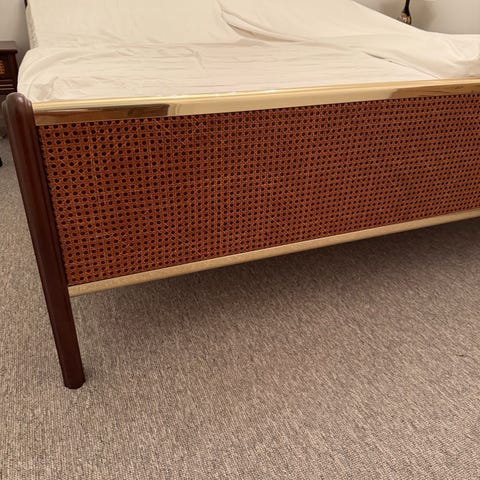 Seng i god stand. Måler 210x180 der er få skrammer på den, topmadras medfølger