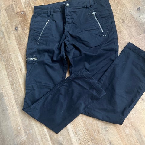 Soho Pants, Sorte med mange fede detaljer, Str 28. 7/8 længde - se foto. Brugte men stadig pæne. Prøves og afhentes på Østerbro KBH. Prisen er fast - ønsker ikke bud. Sender gerne på køber regning. Nypris 999 kr. Pris: 200kr