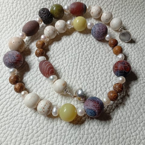Længde 45 cm.unikakæde med sten: agat, lava, cracle agat, tigerøje samt lava.