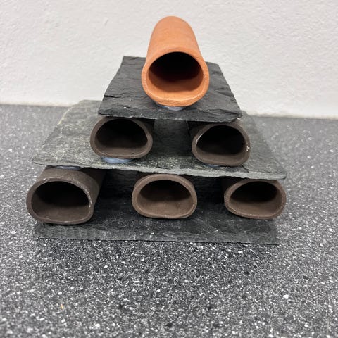 2 stk. Malle huler store 17 cm. Og ca. 5 cm i åbning. Brune lerhuler.