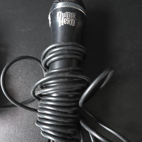 Guitar Hero mikrofon med tilslutningskabel. Sort farve. Designet til brug med Guitar Hero-spil.