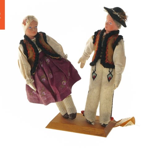 Tjekkiske håndlavede dukker lavet af majsblade. Fremstillet i halvfjerdserne. Tradition eller Dekorationsfigurer designet til brug som pynt eller ved særlige højtider. Sættet består af mere end 10 forskellige håndlavede figurer af majsblade og træ (= naturlige materialer), der forestiller kvinder og børn i gang med forskellige aktiviteter. Figurerne er ca. 10-12 cm høje, står af sig selv og kan anvendes som dekorative elementer ved særlige lejligheder og højtider.