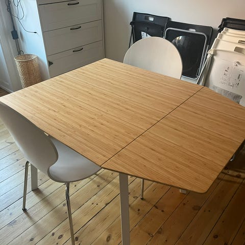 Udgået IKEA klapbord som både kan bruges som skrivebord og spisebord. Standen er fin, med få brugsspor