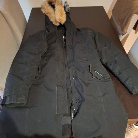 Flot og varm Canada Goose jakke med pelskant på hætten.