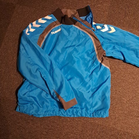 Hummel jakke til børn i størrelse 164. Jakken er unisex og lavet af bomuld. Den har en blå farve med orange detaljer og en hætte. Jakken er egnet til dagligt brug.