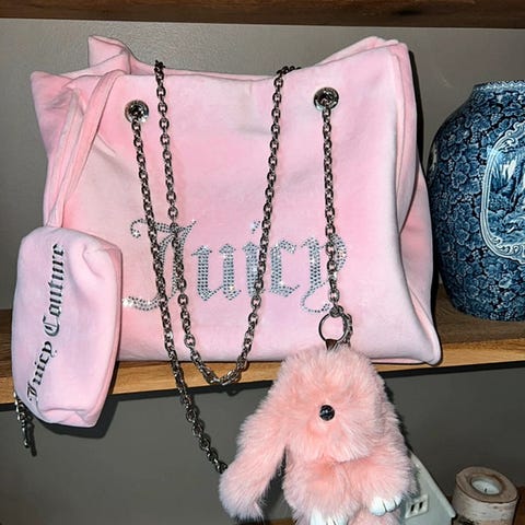 Sælger denne ikoniske Juicy Couture taske. Udgået model. Den er eftertragtet, sjælden og svær at finde, derfor prisen. Der er nogen tegn på slid, som vist på billederne, ellers er den i meget fin stand for sin alder. Vintagestatus - cirka fra 2005. Skriv endelig hvis der er yderligere spørgsmål. :)