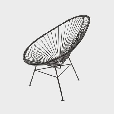 Sort loungestol med hynde. Har kun været brugt indendørs. Hynde har læderbetræk på den ene side, stof på den anden.