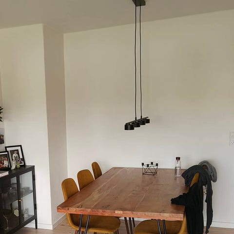 Spisebordet fra Haslev er et super smukt spisebord på 105 x 105 cm med runde hjørner. Dette spisebord er med massiv træ bordplade og splitben i træ.