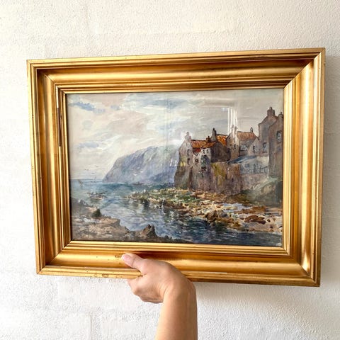 William Stuhr Skagen 1943. Meget stort maleri. Olie på lærred med motiv Skagen havn ,med både og bygninger. Malet under 2 verdenskrig. Maleriet er udført i 1943 og viser detaljerede både i havn og Skagen i baggrunden. Indrammet i en brun ramme.. Mål uden ramme 130 cm bredt 90 cm højt. Maleriet er uden skader eller krakeleringer