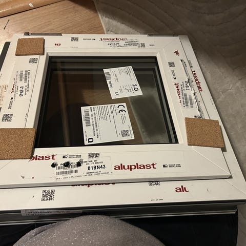 Ubrugt Vindue med contraflame glas. Mål på parti 975 x 1027 mm.