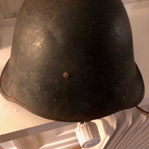 Dansk m/23 hjelmmærke i meget fin kvalitet - dog mangler den ene split, derfor den lave pris.