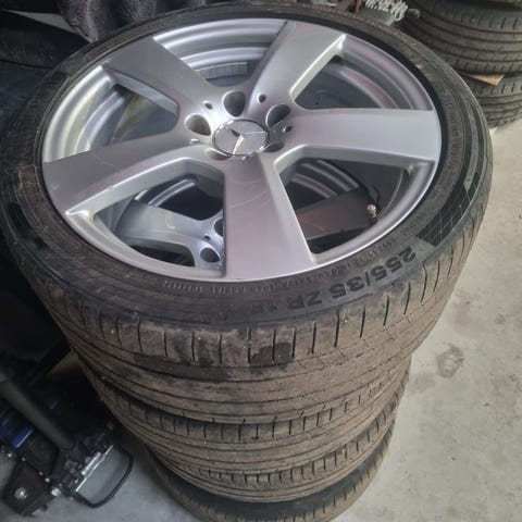 4 stk som har siddet på mercedes - alm. Brugsspor - dækkene er gamle og skal skiftes - ET 67 - 8 x 18" - fast pris afhentet I Jægerspris