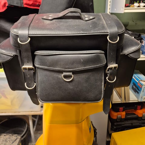 Læder taske til montering på sissybar, kan fungere som rygsæk..: