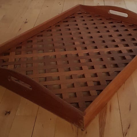 Meget elegant og anvendelig serveringsbakke af palisander, mærket ALFABETA Danmark. Bakke med kant er den perfekte serveringsbakke til dig, der ønsker at servere din mad med stil. Bakken er lavet i flot palisander træ, som giver den et eksklusivt udseende. De høje kanter på bakken sikrer, at maden ikke glider af, og at du kan servere med selvtillid. Bakken er også ideel til at servere morgenmad på sengen. Mål: 38 x 48 x 3,5 cm. Fremstår i god brugt stand med patina /se foto nr. 9 og 10/. Fra ryge-og dyrefrit hjem. Gode P forhold ved afhentning på adressen.