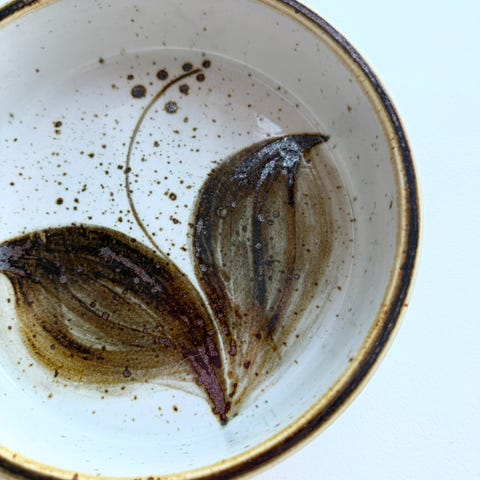 Søholm Keramik i brun keramik. Dekoreret med et bladmønster, dette askebæger er både funktionelt og dekorativt. Perfekt til brug som et stilfuldt element i hjemmet eller som en samlergenstand. Fremstillet