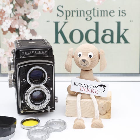 Klassisk Rolleicord (Rolleiflex) TLR kamera til 120-film. Har ikke testet med film, men de væsentligste funktioner lader til at virke, selvom kameraet ligner det har været i krig.