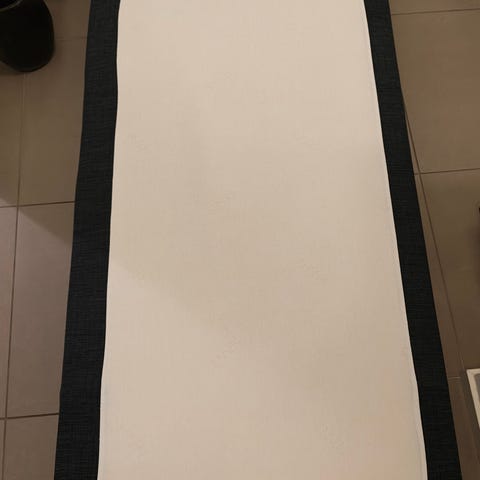 Aldrig brugt. Jensen madras med betræk i hvidt tekstil og skumlag. Madras med synligt Jensen-logo på betrækket.