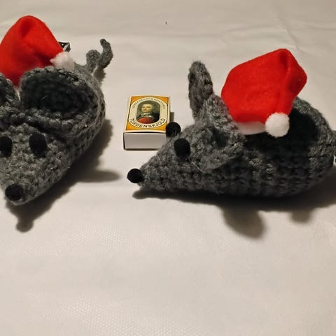 Søde håndlavede julemus lavet i stof og strik
