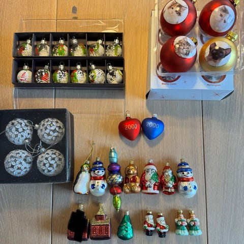 Julefigurer og julekugler sælges samlet for 70 kr.