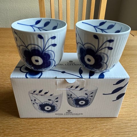Royal Copenhagen Blå Mega fyrfadsstager i porcelæn med blå blomstermotiv. Sættet indeholder 2 stk. fyrfadsstager i original emballage. Kun været ude af kassen for at tage billederne.