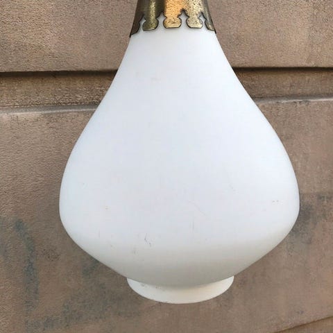 Hvid opal glas lampe med messing ophæng.