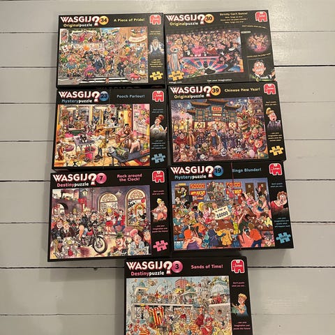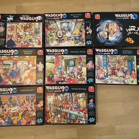 Wasgij puslespil samling bestående af flere forskellige motiver. Hvert puslespil har unikke og detaljerede illustrationer. Egnet til puslespilsentusiaster og samlere.