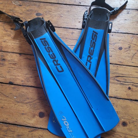 Cressi Snorkel Svømmefødder i sort farve. Fremstillet i holdbart materiale med åbning til fødderne. Designet til snorkling og svømning.