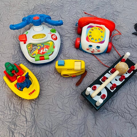 Retro Aktivitets tavle til pilfingre Fisher Price fra 70erne tidlige brugt i tremmeseng og kravlegård alle lyde, klik, piv, drej, klokke virker. Mål 38x30 cm