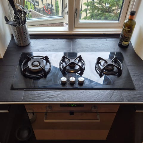 IKEA gaskomfur gaskogeplade med rustfrit stål overflade.