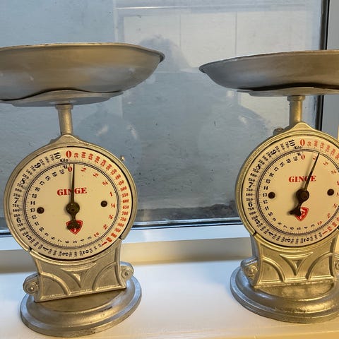 Ginge - gammel køkkenvægt, Metal / støbejern, 90 år gl.