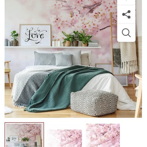 Raffa tapet med palmeprint. Mål: 0,52 meter bred, 10,05 meter lang. Tapetet har et tropisk mønster med palmer og naturinspirerede motiver.