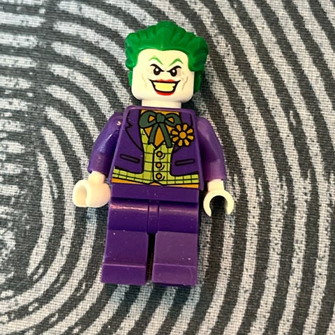 LEGO Minifigur Joker med grønt hår og lilla bukser
