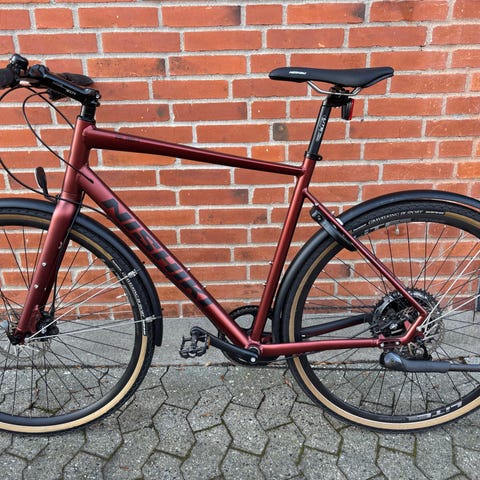 Nishiki Hybrid cykel designet til både mænd og kvinder. Cyklen har en alsidig ramme, der egner sig til forskellige terræner og daglig brug.