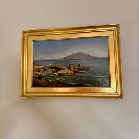 Sælger dette smukke originalmaleri af Joh. Neumann, der forestiller “Een aftenstund i den gamle Gilleleje Havn” – beskrivelsen står håndskrevet på bagsiden og giver værket en særlig lokalhistorisk charme.