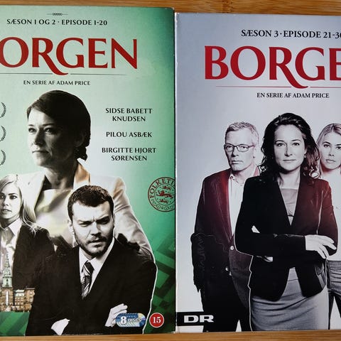 DVD box med alle 4 discs fra serien Borgen. Alle skiver er uden ridser og fungerer perfekt.