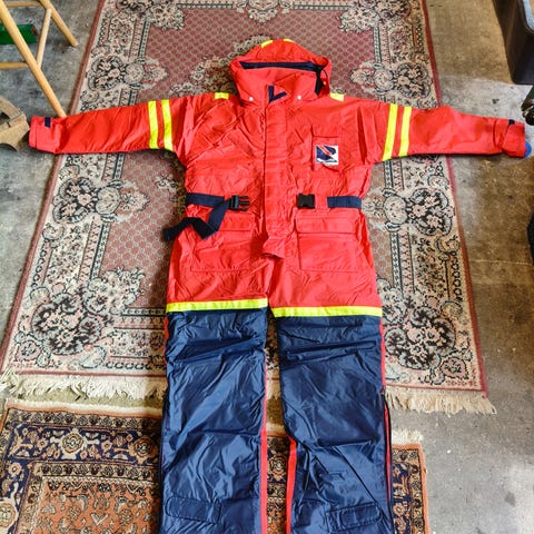 Fladen Rescue System redningsdragt i farverne sort og orange. Str XXL. Holder dig varm på vandet... men er gammel.
