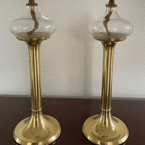 Harnisch messing Petroleumslampe + 2 sølv lysestager