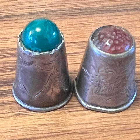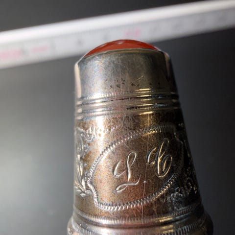 Fingerbøl i sølv med et mønstret overfladedesign.