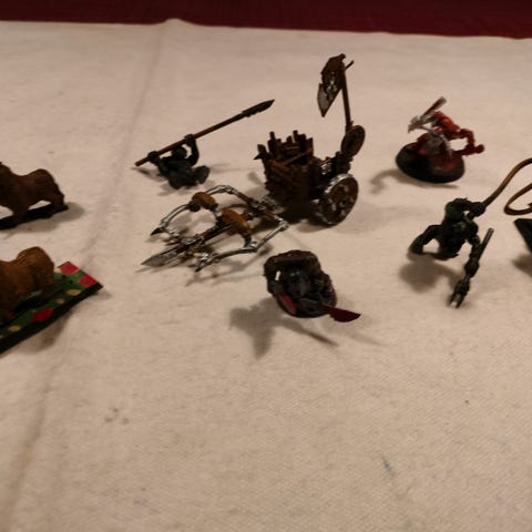 Ældre Games workshop æske med 16 dværge, delvist malede. Masser af ekstra bits. Brug dem feks sammen med Battle for skull pass.