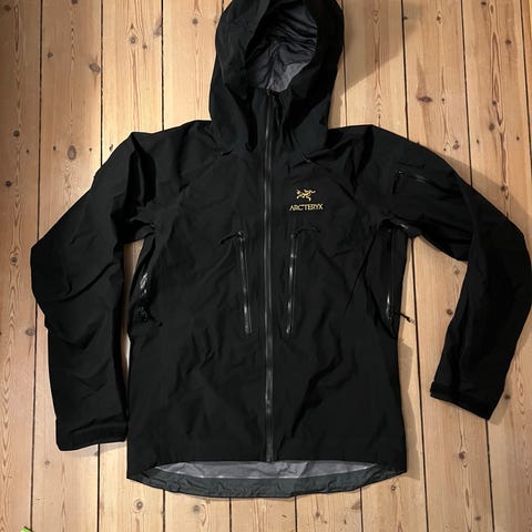 Arc'teryx Vinterjakke i størrelse M til mænd. Jakken er sort og fremstillet af Gore-Tex materiale, hvilket gør den velegnet til udendørs brug i vinterforhold. Jakken har en hætte og flere lommer, herunder en brystlomme med lynlås.