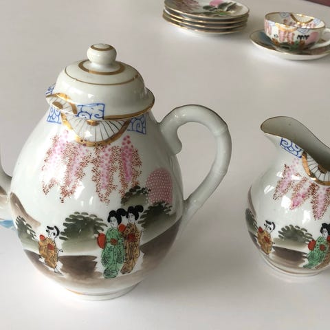 Porcelæn, testel, Ukendt, Japansk.Geisha i bunden af kopperne får sorthårfarve, når man drikker af kopperne