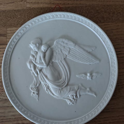 Bisquit procelæn, Thorvaldsens sommer og vinter platter, 1920, 23 cm i diameter, bisquit procelæn af Thorvaldsens sommer og vinter motiver. De er antikke og brugte. Den ene er solgt. Giv gerne et bud.
